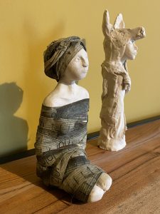 Bis Ende Dezember stellen dann Monica Breuer und Grinnyfer alias Jennifer Finke ihre Gemälde und Arbeiten in Ton in der Zehntscheune aus. Das ist auch die optimale Einkehr zum Besuch der Freilichtgalerie Kronenburg am Kyllradweg. In der Zehntscheune können Sie Skizzen zu den Kunstwerken sehen, Hand kolorierte und signierte Drucke zu den Bildern der Freilichtgalerie bewundern und erwerben.